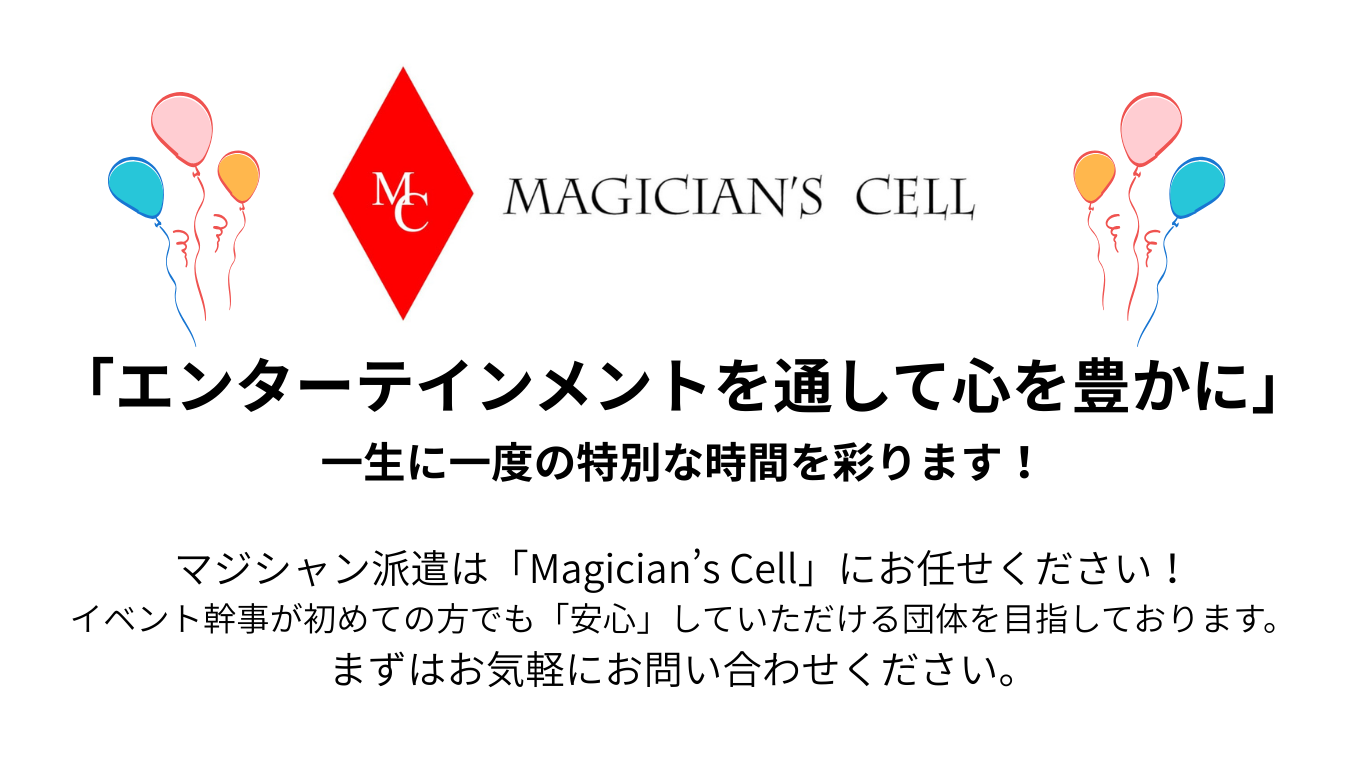 マジシャン派遣事務所 Magician’s Cell では、イベントの規模や目的、観客の年齢層などに合わせて最適なマジシャンを選定し出張いたします。