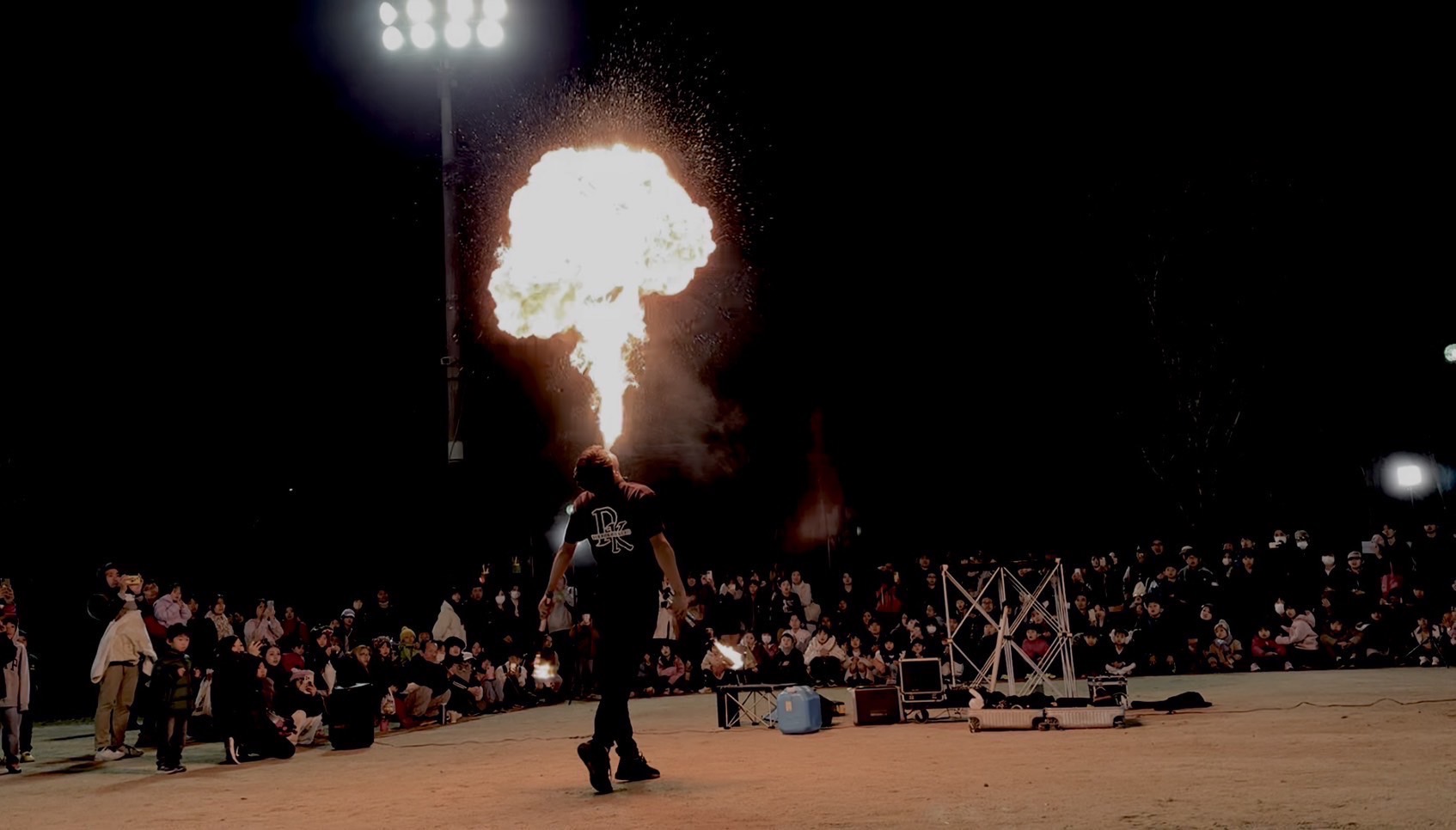 ステージが無くても問題なく、音響照明機材やポータブル電源を持ち込み、パフォーマー自らお客様を集めて動線確保する為、イベント担当者は何も準備しなくて大丈夫です。
